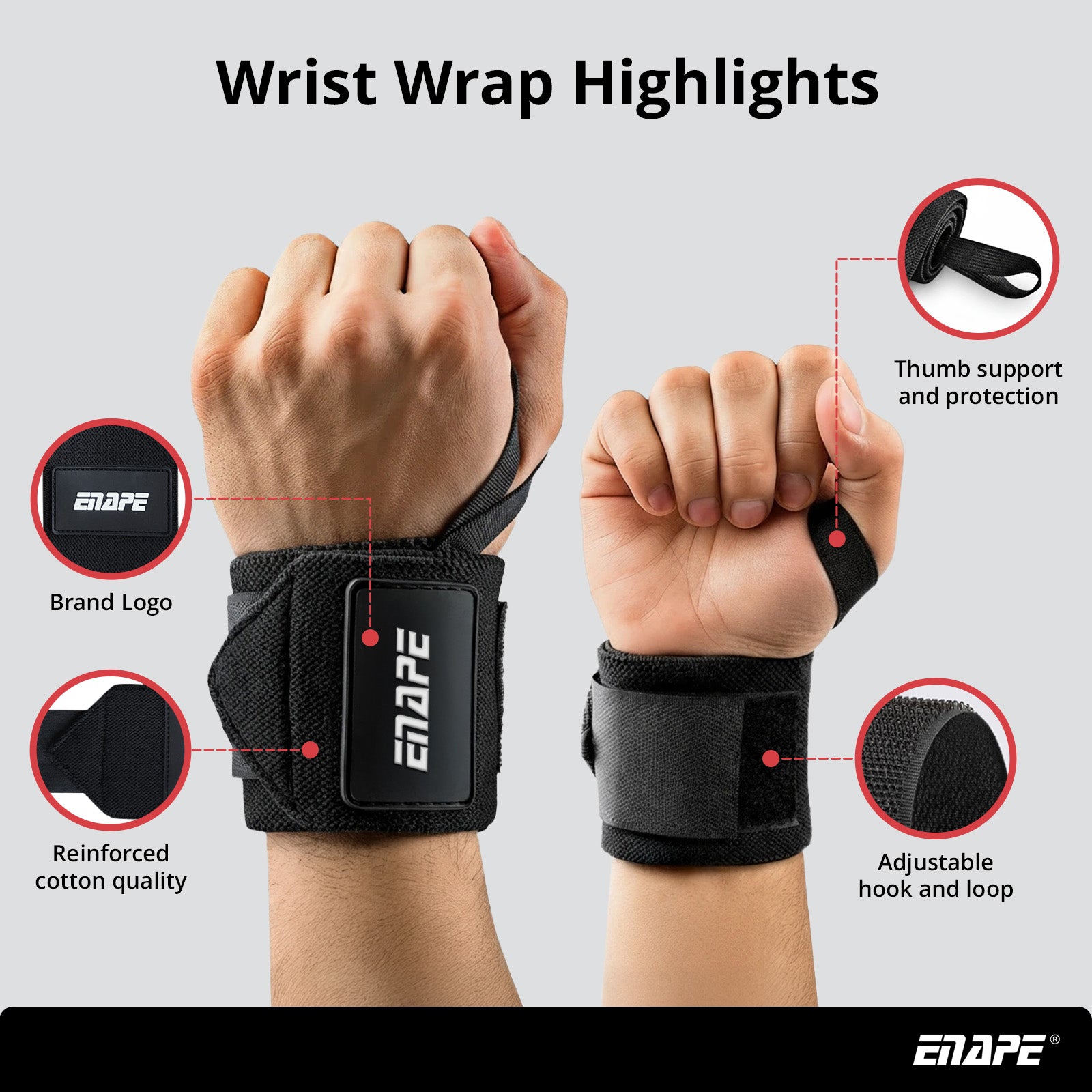 • Strong wrist support for weightlifting & strength training